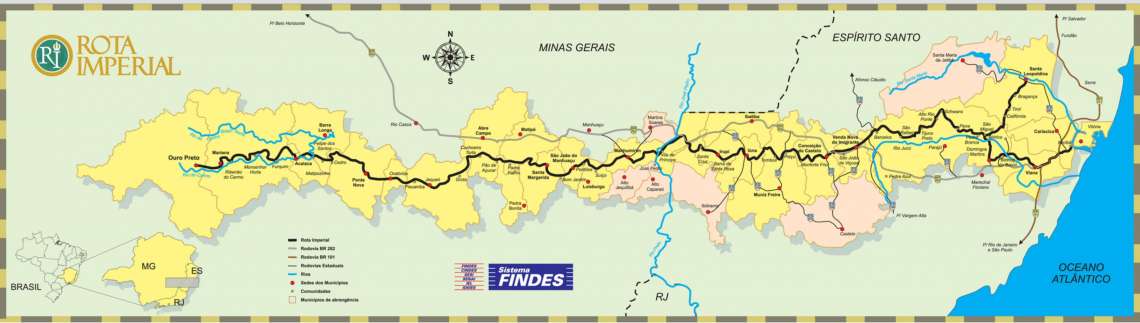 Criada em 1816, a Rota Imperial de São Pedro de Alcântara, liga a cidade de Vitória/ES à Ouro Preto em Minas Gerais.